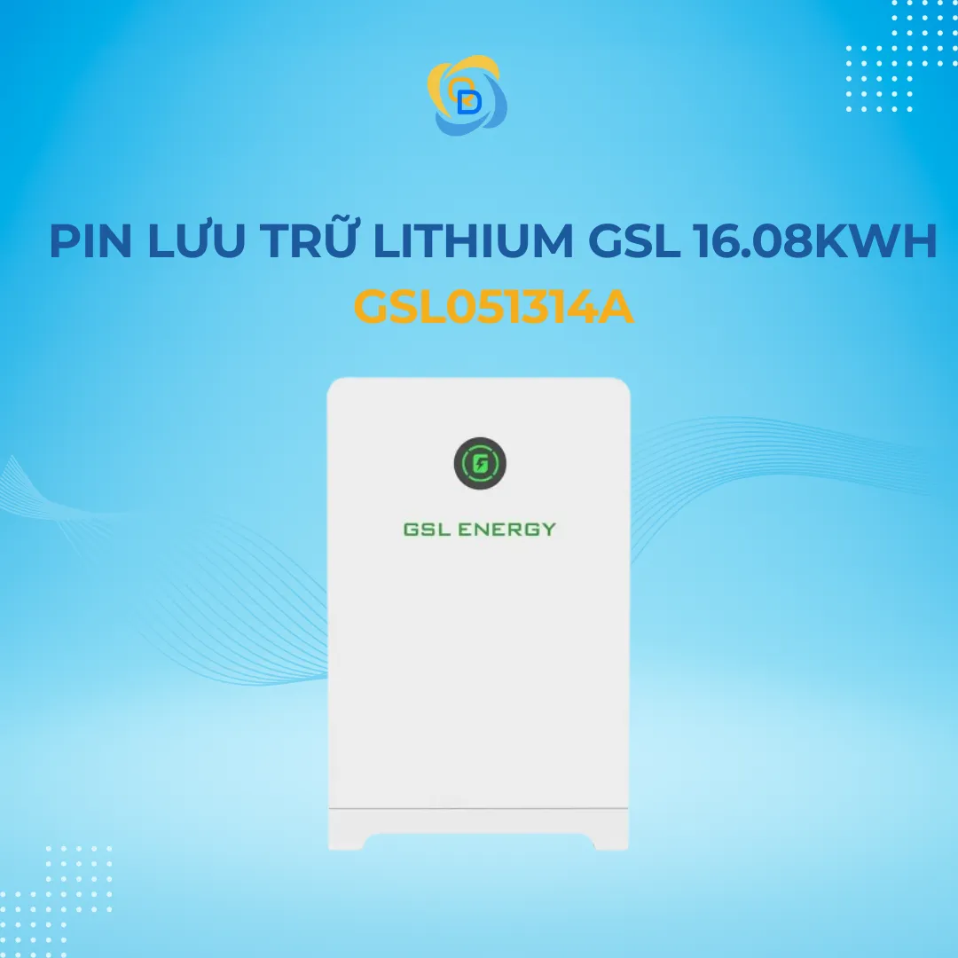 Battery Lithium GSL 16.08 kWh (Model: Pin lưu trữ Lithium GSL 16.08kWh (51.2V – 314Ah) hiệu suất cao, an toàn, bền bỉ. Giải pháp lưu trữ tối ưu cho hệ điện mặt trời hybrid và off-grid. Giá tốt – bảo hành dài.) là dòng pin lưu trữ cao cấp sử dụng công nghệ LiFePO₄ thế hệ mới, được thiết kế dành cho hệ thống điện mặt trời hybrid cho gia đình, doanh nghiệp và các công trình cần nguồn điện dự phòng ổn định.