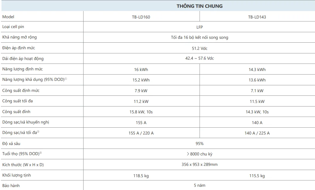 | Khả năng mở rộng | Tối đa 16 module song song → tới ~256 kWh |